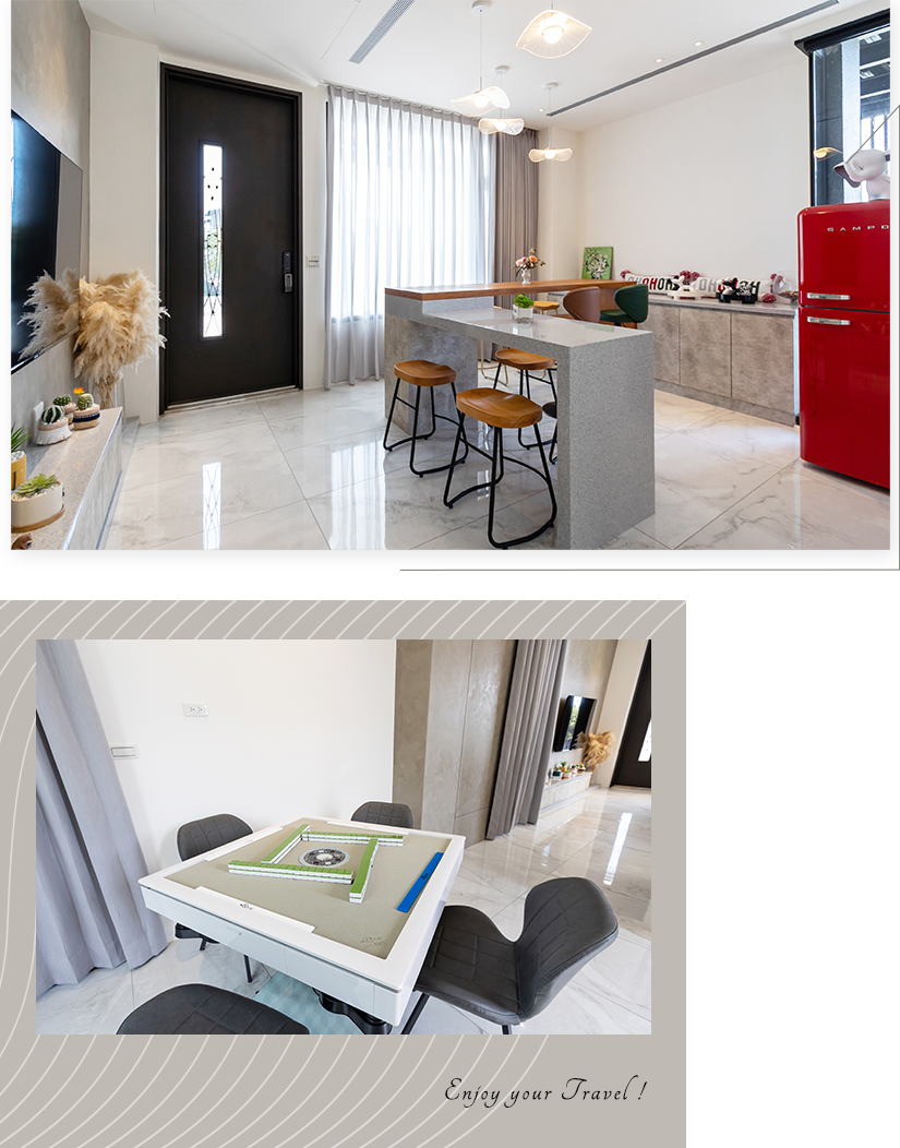 ●  包棟提供:卡拉OK、電動麻將桌、廚房使用、烤肉場地。